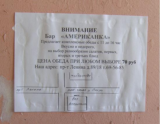 Интересно наблюдать за народными названиями, которые сейчас фиксируются на письме и используются в рекламе. Маркерами пространств — как и в старину — становятся кафе, магазины, торговые центры, и чем они веселее — тем вероятнее, что пойдут в народ. Это знают хозяева, взявшие для своих бизнесов такие яркие имена, как петербургская «Жопа», «Едим руками», московские «Пьяный дятел» и «Дорогая, я перезвоню». По ним мы с удовольствием ориентируемся, а если кабак проживет лет десять — возможно, дело дойдет и до официального топонима.
