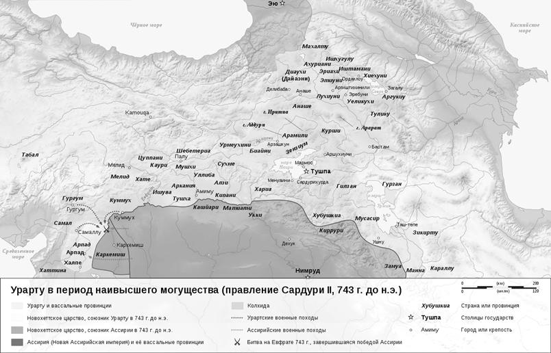 Забегая немного вперед, скажем, что в Урарту в тот период правил Менуа (Манаваз) – один из наиболее выдающихся царей, при котором Урарту достигло пика своего могущества и стало самым сильным государством Передней Азии. Предположительно во время правления Менуа отношения между Урарту и Ассирией были мирными. По крайней мере, до нас не дошли сведения ни о походах Менуа против Ассирии, ни о походах Ассирии против Урарту в годы его правления.