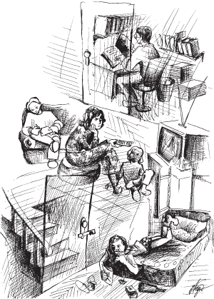Во-первых, учитывается многоголосие, которое подразумевает не только различные позиции членов семьи, но еще и тот факт, что объективно существуют разные семьи и нет общепринятых определений того, что такое семья «на самом деле». Ключевая категория здесь – «примирение» (reconcilliation). Рисунки, которые вы встретите в этой книге, изображают различия во взглядах на семью, на примере которой авторы иллюстрируют свои положения, каждого из пяти ее членов в начале и в конце работы с ней. Каждый член семьи видит всю семью по-своему, и эти картинки меняются во времени, наглядно демонстрируя эту «многоголосную» особенность семейной терапии, где образы иногда более значимы, чем слова, и не нуждаются в переводе. Необходимость учета внутрисемейного многоголосия прежде всего связана с тем (и это подчеркивают многие направления семейной терапии), что именно отношения между супругами – психологический центр всех внутрисемейных взаимодействий, а супружеские проблемы – центр психологических проблем семьи в целом. Дело в том, что брак – это перемешивание двух, первоначально отличных друг от друга культур, которое создает новую культуру, одновременно похожую и не похожую на те, что породили ее. Если культурные различия рассматриваются в семье как негативный фактор, от которого необходимо избавиться, то они ведут к внутрисемейным расколам, вызывая у членов семьи разнообразные защитные реакции. Однако если различия исходных культур рассматриваются как фактор роста для каждого члена семьи, они оказываются очень ценной составляющей внутрисемейной стабильности.