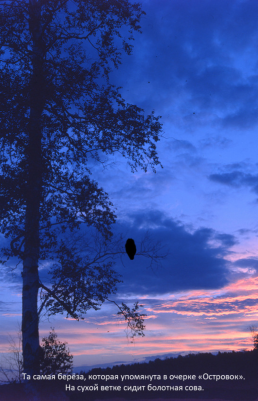Садовые участки отвели нам, как водится, в сыром лесу и вырубили его. Получилось пустое место шириной примерно полкилометра, а длиной — почти полтора. Наш участок оказался как раз в самой середине. У соседей с севера почему-то оставили несколько больших деревьев — огромную берёзу, две липы, осину и ольху. Осина была гнилой и вскоре упала. От неё остался пень метра четыре высотой. Вот эти деревья и стали островочком леса посреди огромной вырубки. Мы его так и называли — островок.