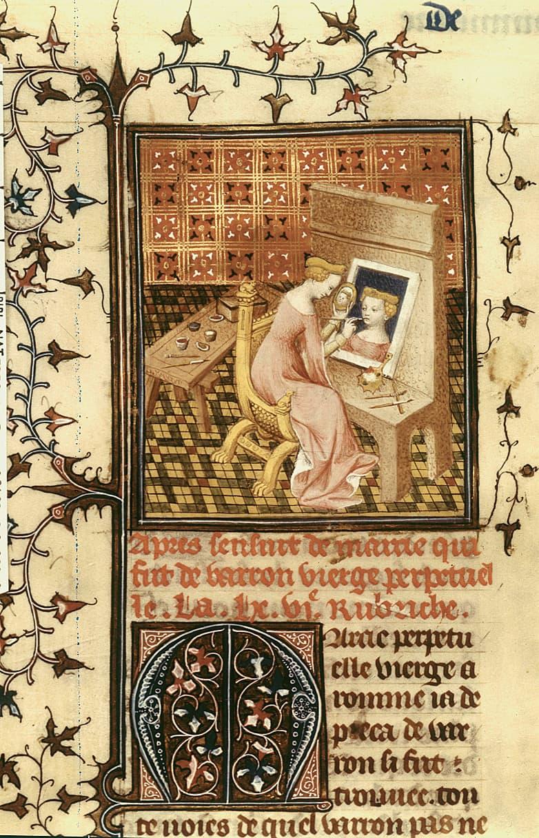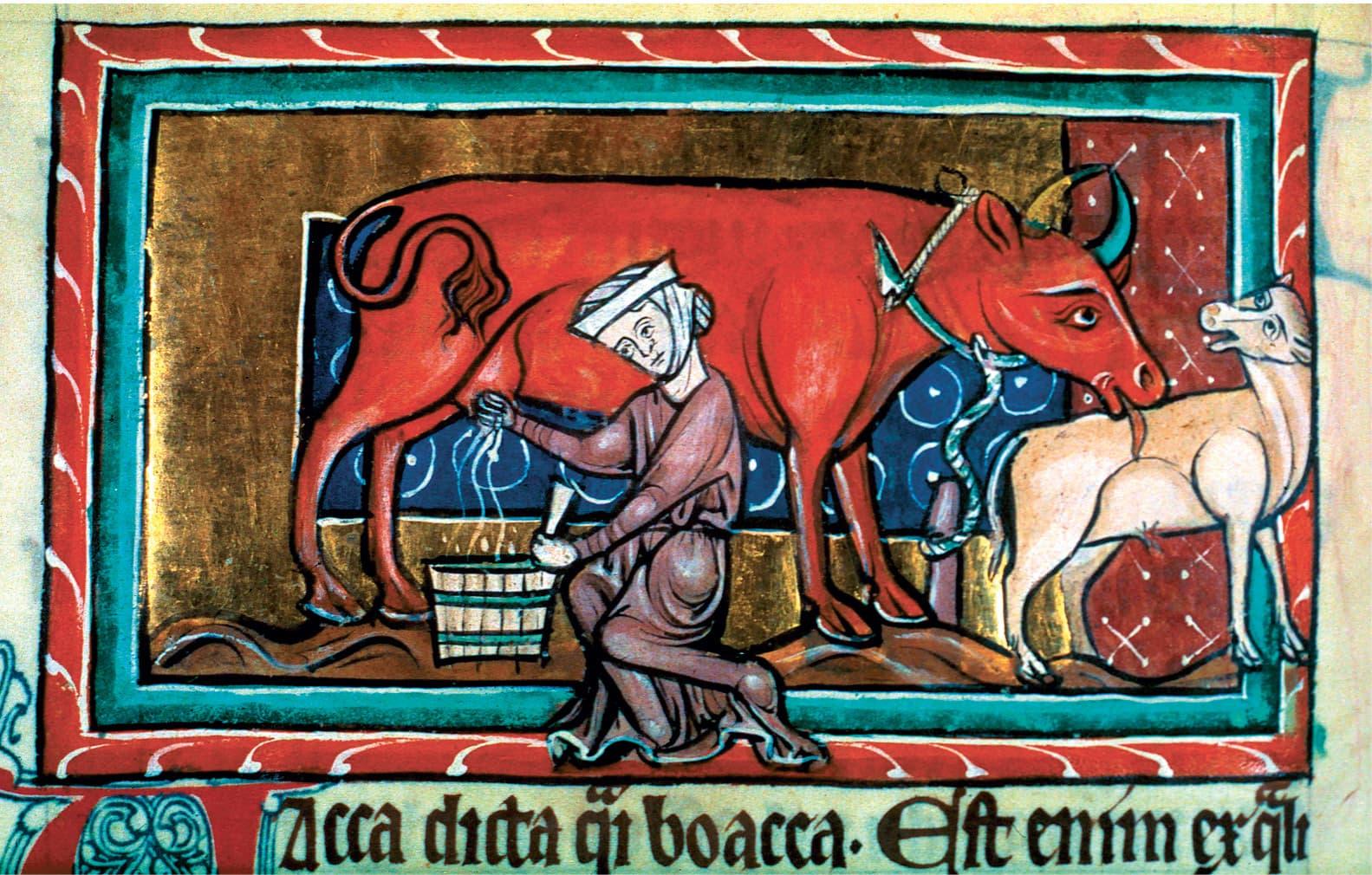 О повседневной жизни и обычаях женщин в Средние века мы знаем во многом благодаря изображениям, запечатлевшим их труд, как, например, на иллюстрации в рукописи XIII века, на которой женщина доит корову. Похожие сцены, вырезанные на капителях романских и готических церквей, вышитые на гобеленах и с ювелирной точностью нарисованные на полях книг, представляют собой повседневный аналог священного образа Девы Марии с Младенцем, который господствовал в средневековой визуальной культуре. Жизнь большинства мужчин и женщин в Средние века была сосредоточена вокруг работы, независимо от того, трудились ли они во славу Божью или ради пропитания. Нам известны имена некоторых влиятельных женщин, меценатов и дарителей подобных изображений, но мы почти ничего не знаем об их авторах, поскольку немногие из них подписывались собственными именами, а сохранение их биографий не играло в данном случае никакой роли.