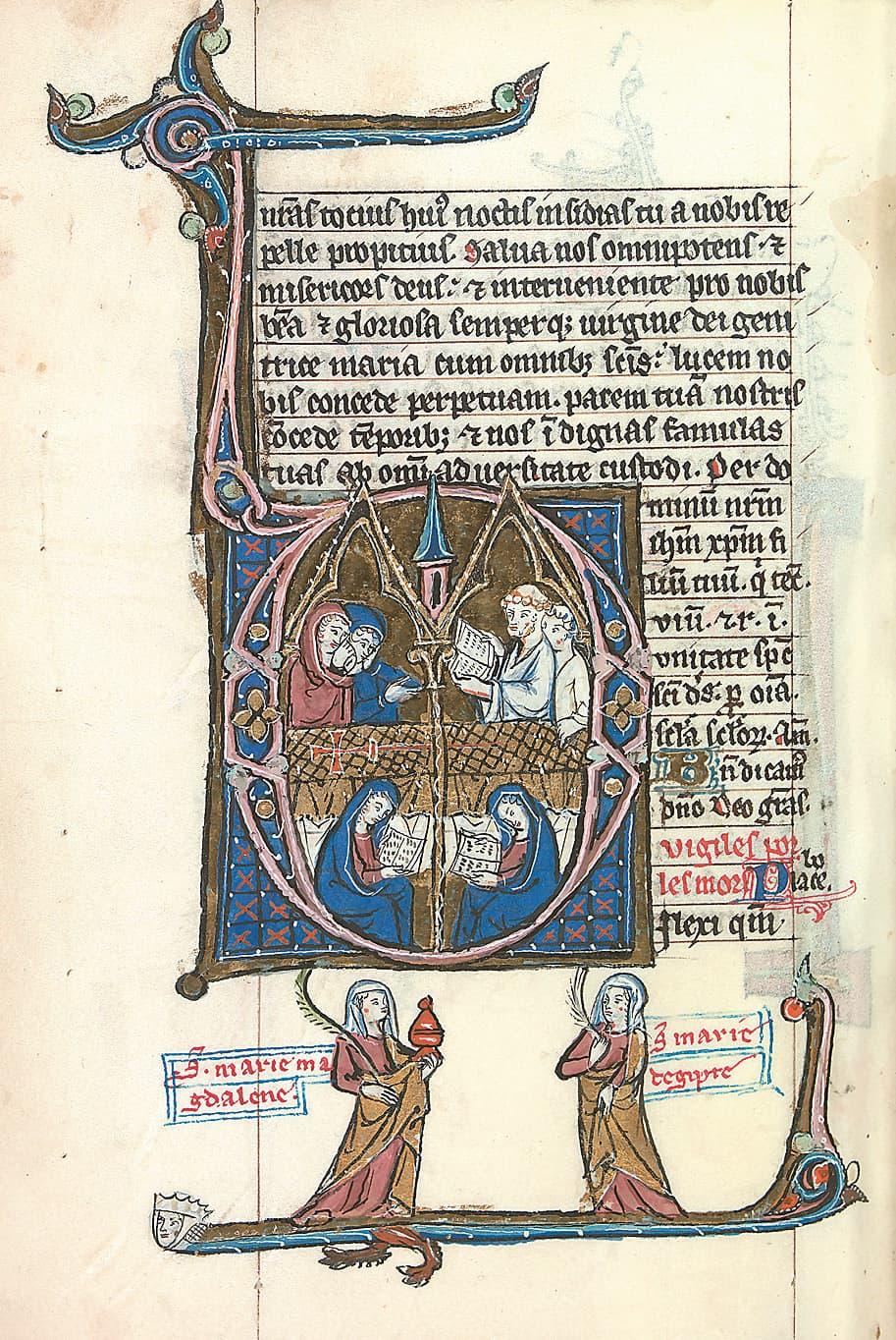 [16] Заупокойная служба. Без страницы. Святая Мария Египетская и Мария Магдалина. Ок. 1300–1310