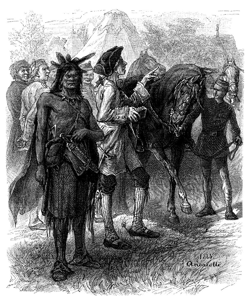 Выполняя свои воинственные планы, французы пытались проникнуть в самые отдаленные и недоступные ущелья Аллеганских гор и обратили внимание на естественные преимущества только что описанной нами области. Действительно, она скоро превратилась в кровавую арену многочисленных сражений, которыми враждующие стороны надеялись решить вопрос относительно обладания колониями.