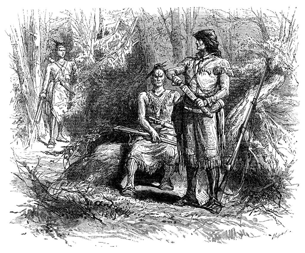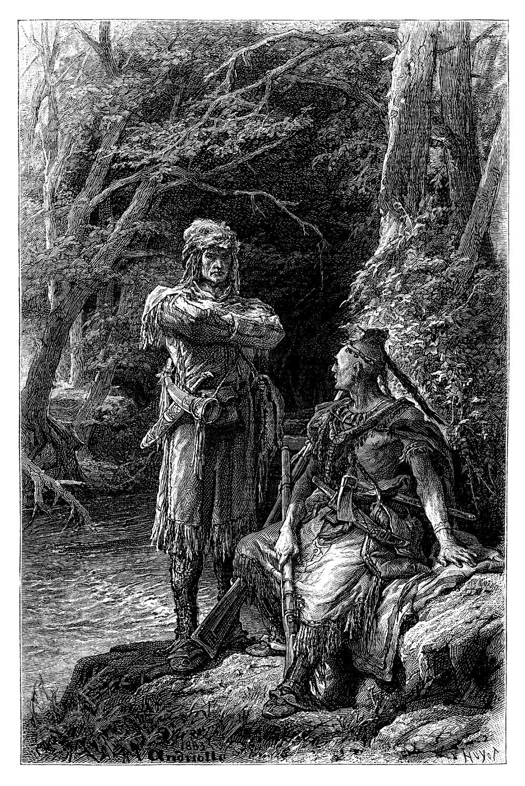 — Гурон? — повторил суровый разведчик и снова, не скрывая недоверия, покачал головой. — Это предательское, вороватое племя. Гурон остается гуроном, кто бы ни принял его к себе. Никакими средствами вы ничего не сделаете из него, он всегда останется трусом и бродягой. Раз вы отдали себя в руки одного из этих людей, надо только удивляться, что он еще не заставил вас наткнуться на целую шайку.