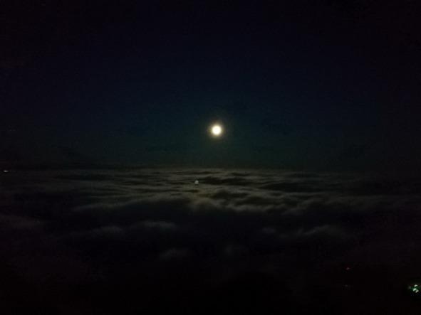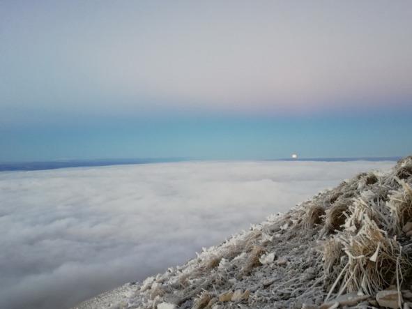 Мы насладились первой порцией впечатлений и принялись насыщать себя физически. Дальнейшее развитие сюжета происходило панорамно. По расписанию. Закат луны заканчивался за две минуты до начала ВОсХода СОЛНЦА! Так как мы находились на вершине, то одновременно нам видны были Восток, Юг и Запад. В итоге Луна, опускаясь и постоянно увеличиваясь в размерах, предстала пред нами в стольких различных цветах, что описать словами это не возможно. Покинула она нас ярко розовой, от уже готового прорезаться на небосклоне солнца.
