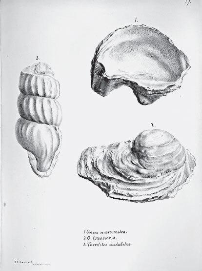 Рис. 1.4. Ostrea recurvirostra, Ostrea transversa и Turrilites undulates из коллекции Этелдред Бенетт (Benett, 1831, figure 17; иллюстрации Э. Д. Смита)