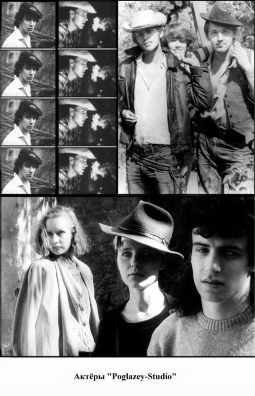 Той весной, готовясь к экзаменам, мы с Витей Митрофановым умчались мечтами в кинематографические дали и принялись искать подходящее название для нашей киностудии. Я вспомнил, что когда-то читал в журнале «Советский экран» юмористический рассказ о том, как София Лорен работала на киностудии «Парамон-Фильм» (название пародировало «Paramount»), и я предложил придумать что-нибудь такое же. Мы усердно раздумывали, перебирали всевозможные шуточные варианты, и кто-то ляпнул слово «глазеть». В каком именно контексте оно прозвучало, не помню, но с того самого момента наша студия стала носить замечательное название «Поглазей-Фильм». Для начальных титров очередного фильма я написал вычурным красно-жёлтым шрифтом «Poglazey-Film», позже «развил» помпезность и наложил эту надпись на могучий рыцарский щит, утыканный множеством шпаг. Получилось броско и вызывающе. В одном из вариантов я даже сделал мультипликационный моргающий глаз. Но довольно быстро я отказался от всего этого и стал давать название простым белым шрифтом на чёрном фоне.