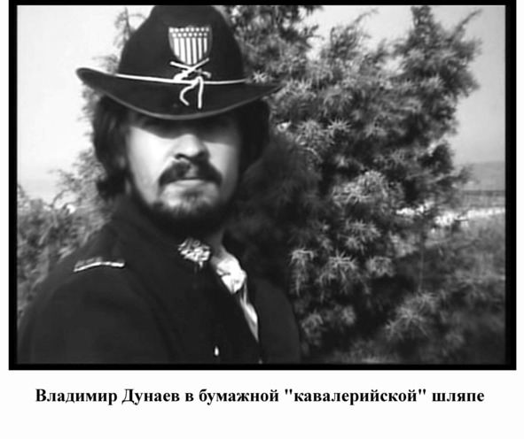 В фильме «Just People» нам пришлось не только подыскивать готовые элементы костюмов, но и шить некоторые вещи. Например, «ковбойские» ремни с кобурами мы пошили из школьных портфелей и каких-то ещё кожаных сумок. Синюю школьную форму мы переделали в американский мундир: пришили два ряда пуговиц, налепили блестящие погоны, подняли воротник; точного сходства не добивались, лишь стилизовали под Blue Coats. «Кавалерийскую» шляпу мне одолжил приятель, учившийся на другом факультете. Шляпа была сувенирная, сильно отличавшаяся от настоящего головного убора американских кавалеристов. Сделанная из прессованной бумаги, на ощупь она напоминала «промокашку» (была такая специальная бумага в мои школьные годы, предназначенная для того, чтобы промакивать чернила). После первого дождя шляпа раскисла, растянулась по форме головы и стала похожа на панаму, но послужить нашему делу успела. Увы, к хозяину эта «шляпа» уже не вернулась, так как возвращать было, по сути, нечего… Когда мне срочно понадобился пышный головой убор, который делается из крупных орлиных перьев (белых перьев с чёрными концами), а добыть такую роскошь было негде, я решил проблему с помощью листа ватмана: вырезал из него нужную мне форму, подкрасил, а чтобы придать «перьям» фактурности, обклеил бумагу ватой по контуру. Моё творение выглядело почти безукоризненно… Индейскую рубаху мы сшили из какой-то восхитительной серо-голубой ткани, которую Румын «позаимствовал» у своей матери, и разрисовали краской на груди.