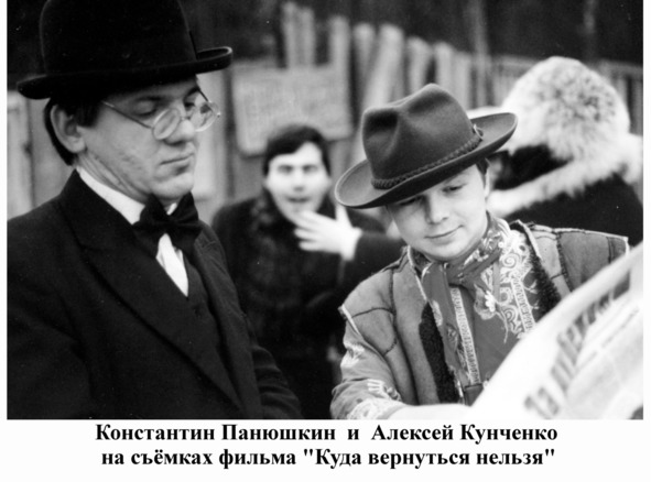 Алексей Кунченко прислал мне коротенькое письмо: «Андрей!.. На квартире твоих родителей я успел в те „совковые“ годы познакомиться с такими вещами как: Жан-Мишель Жарр, Нена, Фил Коллинз и многое чего ещё, за что тебе огромное спасибо, так как Жан-Мишель остаётся с тех пор одним из любимых моих композиторов, слушая которого я „развился“ до этнической музыки народов Востока. Но это фигня… Сниматься было легко. В начале было заносчиво: как же, артист, йопта. Но, наблюдая за повторами проб, пришло понимание о своей малообразованности в этой области. А ещё вспоминается поездка на съёмки в багажнике машины!!![1] Как говорится, почувствуй себя заложником… или трупом… шутка… Утомления не было. Адреналин и эмоции захлестывали. И было стремление сделать как можно лучше. Ничто не заставляло, так как было новым, неизведанным. Было желание повыпендриваться: мол, хочу и могу. Особенно запомнились съёмки у Румына на квартире. Именно там были многочисленные дубли, о которых говорил выше. Если память не отшибло, то тапёра снимали с участием Андрея Брежнева в Зачатьевском переулке. Много было народу. Почему там, хрен вспомню. Потом эту сцену у нас „упёрли“ в фильме „Человек с бульвара капуцинов“… С улыбкой… Часть эпизодов снималась в Дубне. И опять же тебе спасибо, что взяли тогда с собой. После этого провёл там на природе много времени, получив немеряно положительных эмоций и незабываемых впечатлений. Особенно спасибо, что там мне довелось провести несколько дней с Олей Ципилёвой (целомудренно, но так возвышенно). Видел и наслаждался красотой этой девушки. Увы, для меня: не сложилось. Очень хочу, чтобы у неё всё было всё в порядке… Извини, сумбурно…»