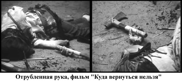 Глеб — Юле, из Москвы в Тольятти, 01.07.1982. «…Мы сняли ещё две сценки. На одной из них меня снова покалечили — на этот раз отрезали руку. Это произошло так: я принёс Андрюшке пластилину, и он слепил отличную кисть руки. Мы её покрасили гримом и, взяв индийского барахла, уже к 11-12-ти были в лесу. Там меня одели по всем статьям, и мне в той холщовой индейской рубахе было нетрудно согнуть руку в кистевом суставе так, чтобы её не было видно. Потом окровавили конец рукава рубахи, отрезанную кисть, рукоятку томагавка, который был у меня в отрезанной руке. Потом положили всяких тряпок, палок и т.п., и Андрюшка снял всё с двух ракурсов, причём мы подожгли там деревяшки, и они здорово горели с дымом. Как вышло, увидим. Потом, когда всё это досняли, я пошёл встречать Ольгу — она хотела посмотреть. Мне Андрюшка объяснил, как дойти… Я же знал, что её дома находятся недалеко от стадиона, и решил, что она будет ждать где-то там. И я пошёл туда. Там я начал звать её, но никто, разумеется, не откликнулся, потом я прошёл весь жилой массив. Понимаешь, там такая часть города, что везде очень много всяких лесков, и вскоре, одним словом, я заблудился среди этих лесков, домов и грязи. Прошатался там час (пробегал, точнее). Удивительно, как я ещё на улицу Горького не забрёл… Когда я вернулся на наше место без Ольги, Андрюшки уже не было. Он ждал меня час с лишним. Я посидел немного у моей отрезанной руки (кстати, неплохо смотрелось), подумал и вдруг с бешеной скоростью бросился к остановке. Я начал кричать Андрюшке, и он отозвался… За то время, что меня не было, он построил маленький вигвамчик и спалил его вместе с тряпками. Потом пошёл на стадион. Там, естественно, никого не был
