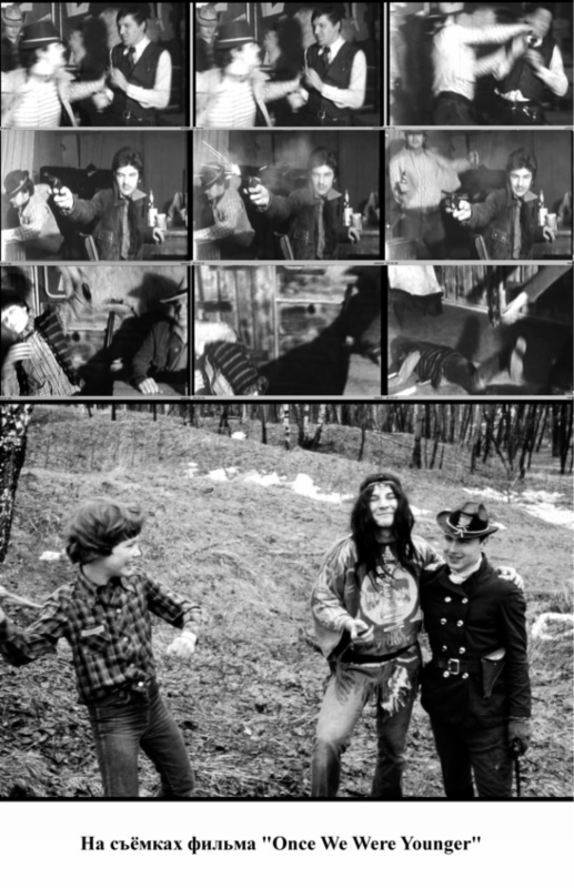 Результат моего кропотливого труда, показанный на домашнем экране, не имел ничего общего с моим замыслом. Приходилось несколько раз прерывать сеанс, отматывать плёнку назад и объяснять зрителям, что же они только что видели (правильнее сказать — должны были увидеть, потому что фигурки в кадре перемещались со скоростью космических кораблей, мелькали, и глаз не успевал зафиксироваться хоть на чём-нибудь). По большому счёту, это был провал, каких не знал мировой кинематограф. Но меня это не сломило и даже не смутило. Я решил снять ещё один фильм, на этот раз с настоящими людьми. Я выклянчил у отца ещё одну киноплёнку и привлёк к моему грандиозному замыслу двух моих закадычных друзей — Сашу Болдина и Сашу Градова, один из них на два года моложе меня, другой — на три. Они изображали ковбоев, объятых лютой ненавистью друг к другу, поэтому весь трёхминутный фильм дрались и стреляли друг в друга из игрушечных пистолетов. Фильм назывался «Драма из жизни Дикого Запада». Наверное, мы сейчас от хохота попадали бы со стульев, если бы была возможность посмотреть на тех малолетних ковбоев. Жаль, что этот опус не сохранился.