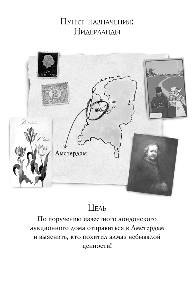 По следам алмаза. У Ларри Мистери новое неожиданное хобби — он вдруг решает обзавестись собакой. Ведь это отличный способ познакомиться с юной аристократкой, которая выгуливает своего пуделя в парке возле Тауэра. И вот в домике Ларри появляется неугомонный щенок по кличке Шерлок, который не даёт своему хозяину ни минуты покоя. И к тому же приходится брать пса в очередную командировку — ведь команда сыщиков срочно вылетает в Амстердам. Агате и Ларри предстоит расследовать таинственное исчезновение необработанного алмаза небывалой ценности. Счёт идёт на часы: стоит преступнику отдать алмаз в огранку, и сокровище стоимостью в полмиллиона фунтов стерлингов исчезнет навсегда. И, как знать, возможно, именно собачье чутьё поможет сыщикам взять след алмаза…
