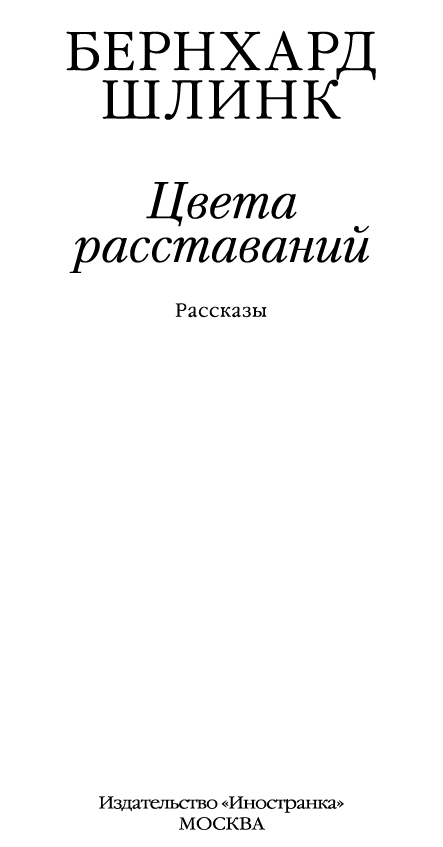 Цвета расставаний : рассказы / Бернхард Шлинк ; пер. с нем. Г. Ноткина. — М. : Иностранка, Азбука-Аттикус, 2021. — (Большой роман).