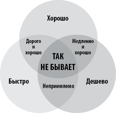 Казалось бы, вопрос только в цене, которую мы (и наш заказчик) готовы заплатить за качество. Достаточно выбрать метод реализации проекта: либо «быстро, криво, дешево», либо «медленно, качественно, дорого». В некоторых случаях упростить выбор заказчику может картинка-мотиватор (рис. 1.1).