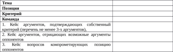 В результате подготовительного этапа у каждой из сторон должен быть набор соответствующих кейсов, представленных в виде таблицы.