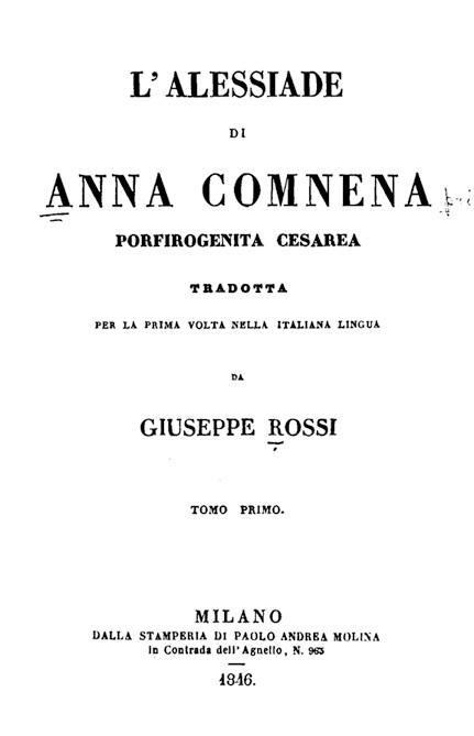 Рис. 3. Титульная страница первого итальянского перевода Алексиады, 1846 год. Взято из Википедии.