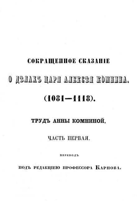Рис. 5. Титульный лист русского издания Алексиады, сделанного в XIX веке, 1859 год.