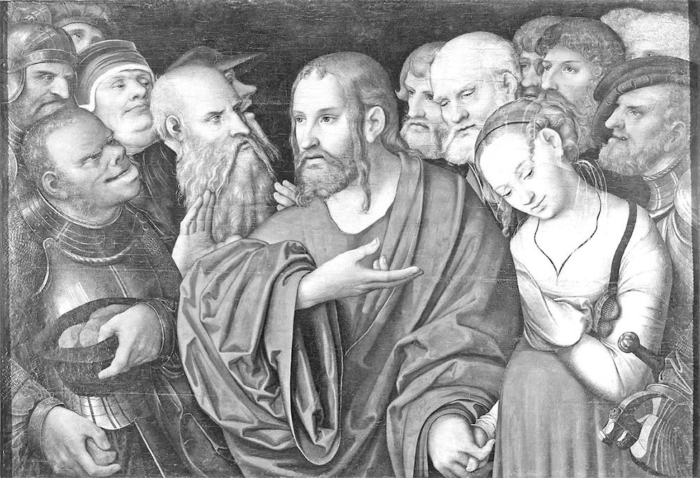 Рис. 7. Христос и грешница. Лука Кранах Младший. Якобы около 1532 года. Взято из Википедии.