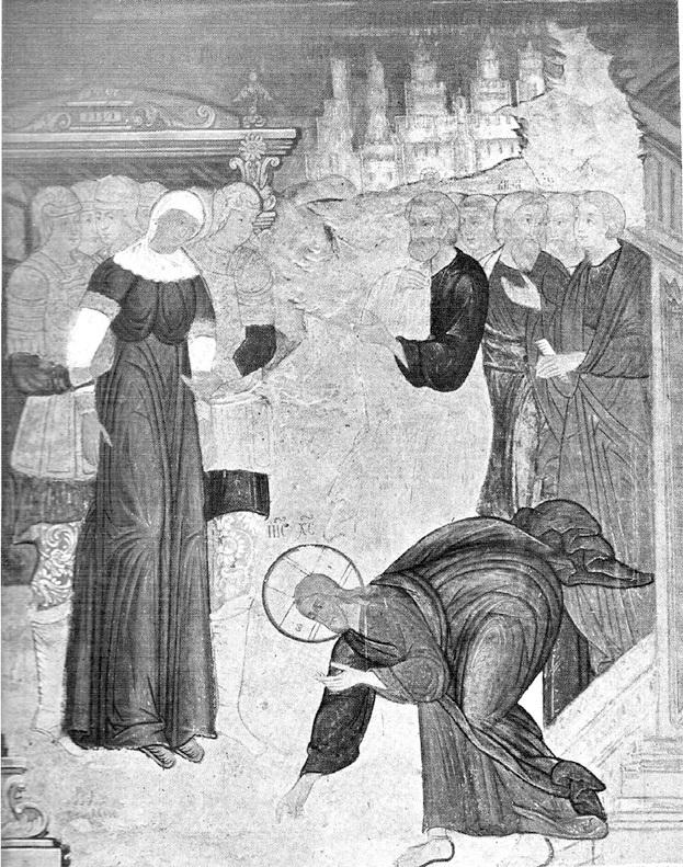 Рис. 8. Христос и грешница. Фреска Софийского собора в Вологде. Взято из Википедии.