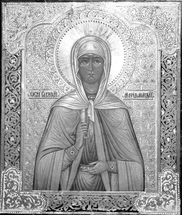 Рис. 11. Святая Мария Магдалина. Православная икона XIX века. Мария Магдалина изображена держащей сосуд с миром в руках как жена-мироносица. Взято из Интернета.
