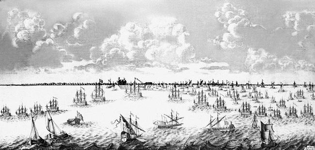 Однако кроме шведов «Кроншлоту» доставляли неприятности наводнения, случавшиеся регулярно. Но перестройка первого форта крепости назрела давно и не только из-за наводнения. Требовалось увеличить гавань форта, так как количество прибывающих торговых судов возрастало с каждым годом. Судно голландского шкипера Выбеса стало первым, в ноябре 1703 г. оно доставило в Санкт-Петербург вино и соль, за что шкипер получил 500 золотых – награду, назначенную Петром еще в мае 1703-го. А 22 июня 1715 г. в Кронштадте Петр устроил торжественную встречу 45 голландских и английских судов.