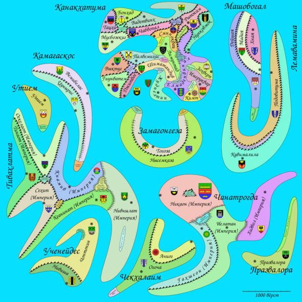 — Гербы у нас есть, вон, висит над городскими воротами. — царь в очередной раз не удержался от едкого замечания советнику.