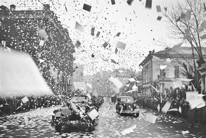 Авиапарады в Тушино были во второй половине 1930-х годов одним из любимых зрелищ москвичей. В день воздушного праздника публика собиралась рано утром, чтобы занять удобные места у края аэродрома. Все надеялись не только полюбоваться фигурами высшего пилотажа в исполнении храбрых летчиков, но и воочию увидеть на открытом балконе Сталина в белой парадной форме.