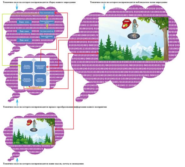 На этом изображении вы можете наблюдать механизмы вашей первичной вкусовой галлюцинации относительно вашего единого сознания. Ваше единое сознание собирает ваше коллективное мироздание и передаёт его на тензичное поле каждого сознания, которое копирует это мироздание в качестве своей собственной сборки мироздания. Но, все сборки мирозданий, как правило, синхронизированы и по этой причине вы все живёте в иллюзии одного коллективного мироздания. Если вы наблюдаете первичные галлюцинации, то ваша сборка мироздания немного отличается от сборки мироздания каждого человека на вашей планете и именно по этой причине другие люди не способны наблюдать ваши первичные галлюцинации. Ваше единое сознание воспроизводит на каждом тензичном поле бесконечное количество сознаний, но на этом изображении показано все два сознания, которые воспроизводятся на тензичном поле единого сознания. Ваша сборка мироздания может немного отличаться от сборки вашего коллективного мироздания, и если это происходит, то вы наблюдаете первичные галлюцинации. Но, иногда сборка мироздания может отличаться от сборки вашего коллективного мироздания настолько значительно, что вы наблюдаете первичные галлюцинации своего придуманного мира. Если вы изменили депликатный программный код своей сборки мироздания и создали придуманный мир, то ваш придуманный мир является вашей первичной галлюцинацией, так как ваша сборка мироздания не синхронизирована со сборкой мироздания каждого человека на вашей планете. В своём придуманном мире вы можете испытывать все привычные для вас ощущения, и в частности вы можете испытывать вкусовые ощущения. На этом изображении вы можете наблюдать механизмы вашей первичной вкусовой галлюцинации в своём придуманном мире.