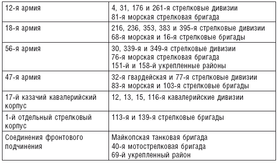 Боевой состав советских войск на Кубани 1 августа 1942 г.