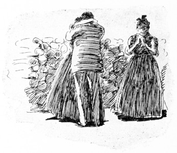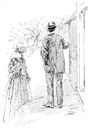 In the warm dusk of a Summer’s evening, a limping, shackle-gaited, bewildered horse, dragging a calash in the last stages of ruin, brought two travelers into the village of Byram’s Pond. Far up on the hills there lingered yet the clouds of dust that marked where that calash had come down those hills at a pace whereat no calash ever came down hill before. Dust covered the two travelers so thickly, that, although the woman’s costume was of peculiar and striking construction, its eccentricities were lost in a dull and uniform grayness. Her bonnet, however, would have excited comment. It had apparently been of remarkable height; but pounding against the hood of the calash had so knocked it out of all semblance to its original shape, that with its great wire hoops sticking out “four ways for Sunday,” it looked more like a discarded crinoline perched upon her head than any known form of feminine bonnet.