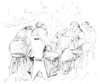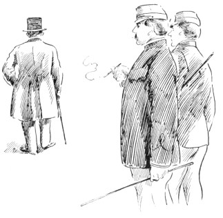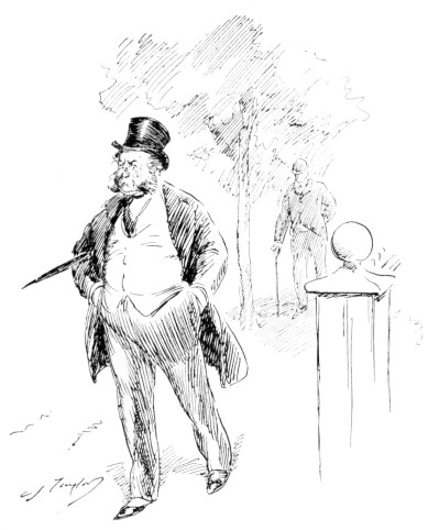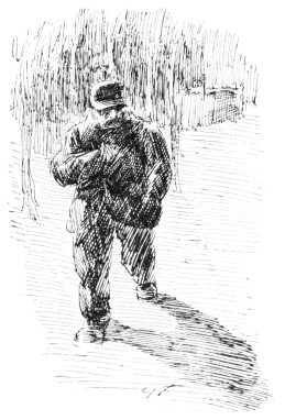 Such was Mr. Vincent Egg, after a half-century of struggle with the world; and something of an imposing figure he made, too, in his defeat and degradation. His nose was red, his cheeks were puffed and veined, there were bags under his bloodshot eyes, his close-cropped hair was thin, his stubby little gray moustache, desperately waxed at the ends, gave an incongruously foreign touch to his decidedly Anglo-Saxon face—and his clothes were shockingly shabby. But then he wore his clothes, as few men in our day can wear clothes; and they were his clothes; his very own, and not another’s. People often spoke of him, after seeing him once, as “that big, soldierly-looking old man in the white hat.” But he did not wear a white hat. His hat, which was one of the largest, one of the jauntiest and one of the oldest ever seen, had also been, in its time, one of the blackest. It was his coat that gave people an idea of his having something about him that suggested white. It was a tightly-buttoned frock-coat of an indescribable light-dirty color. Most hopelessly shabby men cling to some standard of taste in dress that was the standard in their last-remembered days of prosperity. That coat—if it were one coat and not only one of a long-lived family—marked the fact that the last season of prosperity Mr. Egg had enjoyed was a season, now some twenty years gone, when the London “swells” or “nobs,” or whatever they called them then, wore frock-coats of certain fashionable light shades of fawn and mouse-color, then known, I believe, as “London Smoke” and “French Gray.” While it can not be said that Mr. Egg’s coat was familiar in every quarter of Europe (for it rarely staid long enough in any one place), it had certainly been seen in all. And more than one Austrian officer, after passing Mr. Egg in that garment of pallid, dubious and puzzling hue, had turned sharply around to satisfy himself that it was not a uniform-coat in a condition of profanation. A certain state and dignity that still clung to this coat, and the startling cleanness of his well-scissored cuffs and collars were all that remained to give Mr. Egg a hold upon exterior respectability.