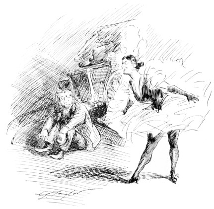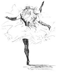 And suddenly, like the tiger leaping from her lair, the soft pattering and shuffling of feet behind him resolved itself into a quick, furious rhythmic beat, and Samantha Spaulding shot high into the air, holding up her skirts with both hands, while her neat ankles crossed each other in a marvelous complication of agility a good twelve inches above his outstretched hat.