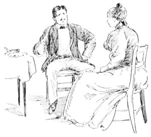 Mr. Pett stuck a crooked forefinger into his lady-love’s face, and gazed at her with such an intensity that she was obliged at last to return his penetrating gaze.