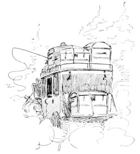 He was dreaming leaden-hued dreams, oppressed, uncomfortable dreams, when a peculiarly weird and uncanny series of thumps on the front of the house awoke him with a start. The thumps might have been made by a giant with a weaver’s beam, but he must have been a very drunken giant to group his thumps in such a disorderly parody of time and sequence.