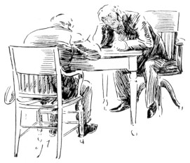 In the interview the next day, between Mr. Brimmington and Mr. Skinner, the aggressiveness was all on Mr. Brimmington’s side, and Mr. Skinner was meek and wore an anxious expression. Mr. Brimmington had, however, changed his point of view. He now realized that sleeping out of Winter nights might be unpleasant, even painful to an aged and rheumatic horse. And, although he had cause of legitimate complaint against the creature, he could no longer bear to think of killing the animal with whom he had shared that cold and silent vigil. He commissioned Mr. Skinner to build for the brute a small but commodious lodging, and to provide a proper stock of provender—commissions which Mr. Skinner gladly and humbly accepted. As to the undertaking to get the horse out of his immediate predicament, however, Mr. Skinner absolutely refused to touch the job. “That horse don’t like me,” said Mr. Skinner; “I know he don’t; I seen it in his eyes long ago. If you like, I’ll send you two or three men and a block-and-tackle, and they can get him out; but not me; no, sir!”
