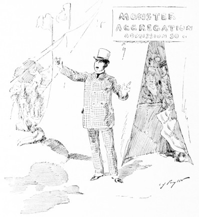 The calash slowed up as it drew near the town. Suddenly it stopped short, and both the travelers gazed with startled interest at a capacious white tent reared by the roadside. From within this tent came the strains of a straining melodeon. Over the portal was stretched a canvas sign: