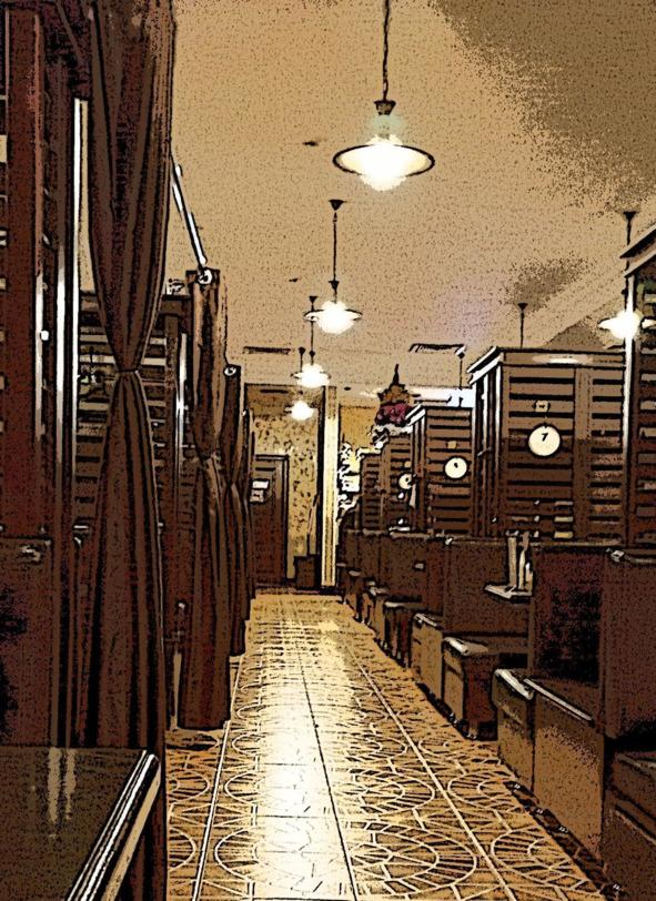 Кеша, пройдя турникет, попал в зал ресторана, комнату отдыха (посиделок), раздевалку для одежды — той, что снимается после верхней, — и все это располагалось в одном помещении. Позади каждого кожаного дивана — удобно пристроенные практичные отсеки, туда можно уложить все принесенные с собой вещи. Как и во всех московских банях, здесь есть ВИП-места для отдельных компаний, отделенные шторами от общих залов.