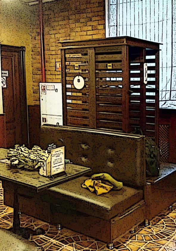 Перед ним открылся самый банальный предбанник. Справа гардероб, прямо — касса и вход в мужское отделение. Слева — коридор с дверями, ведущими в кабинеты с кожаными диванами, где оказываются разнообразные виды услуг. В конце коридора вывеска: «Женский разряд» то есть для слабого пола есть отдельная баня, а не так, как иногда бывают женские и мужские дни в одном помещении.