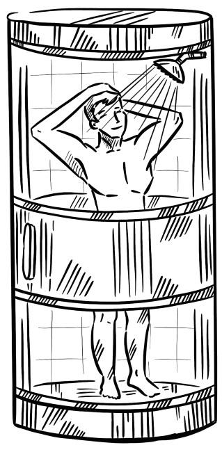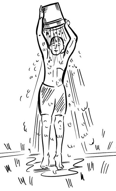 Вы приехали в деревню, устали, и вам хочется лечь и немного поспать, но жаль времени: впереди еще полдня. Где же взять энергию? Примите холодный душ, который можно предварительно построить в саду у дома, или опрокиньте на себя ведро холодной воды из колодца, встав при этом в тазик с холодной водой, а если есть водоем, искупайтесь в нем [рис. 1 а, б, в).
