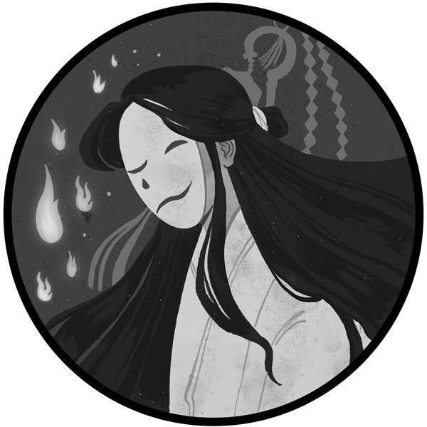 – Несомненно, – ответил Хуа Чэн. – Взгляни на зелёный огонёк над её головой.