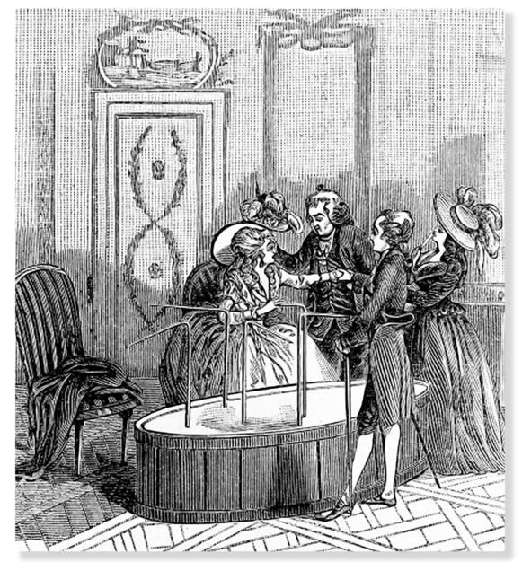 Совсем по другому работали последователи Франсуа Месмера. Месмеристы проводили исцеляющие сеансы. Для этого использовались специальные деревянные чаны. Обратив внимание на необычные психические состояния людей во время исцеляющих сеансов, месмеристы стали проводить с помощью деревянных чанов сеансы телепатии. По мнению месмеристов, физическая природа исцеления и передачи мыслей от одного человека к другому едина. Все дело — в особенностях перемещения исцеляющих или телепатических флюидов, в их сбалансированности, избытке или недостатке в организме человека.