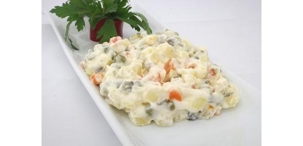 Способ приготовления: Твердый сыр потереть на мелкой терке, остальные ингредиенты порезать мелкими кубиками. Все заправить майонезом.