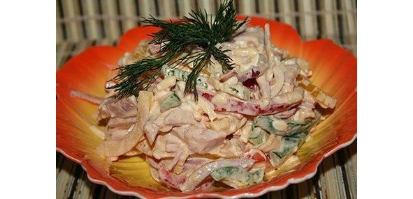 Способ приготовления: Измельчить все составляющие соломкой и заправить майонезом