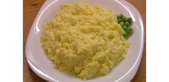 Способ приготовления: Мозги очистить от пленок, осторожно нарезать кубиками. Яблоки и отварной картофель нарезать мелкими кубиками. Лук нарезать тонкими кольцами и обдать кипятком, дать стечь. Сыр натереть на терке.