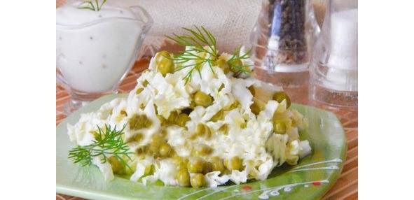 Способ приготовления: Грибы нарезать мелкими кубиками и обжарить на растительном масле, лук нашинковать, яйца порезать кубиками. Всыпать зеленый горошек. Все составляющие смешать и заправить все майонезом.