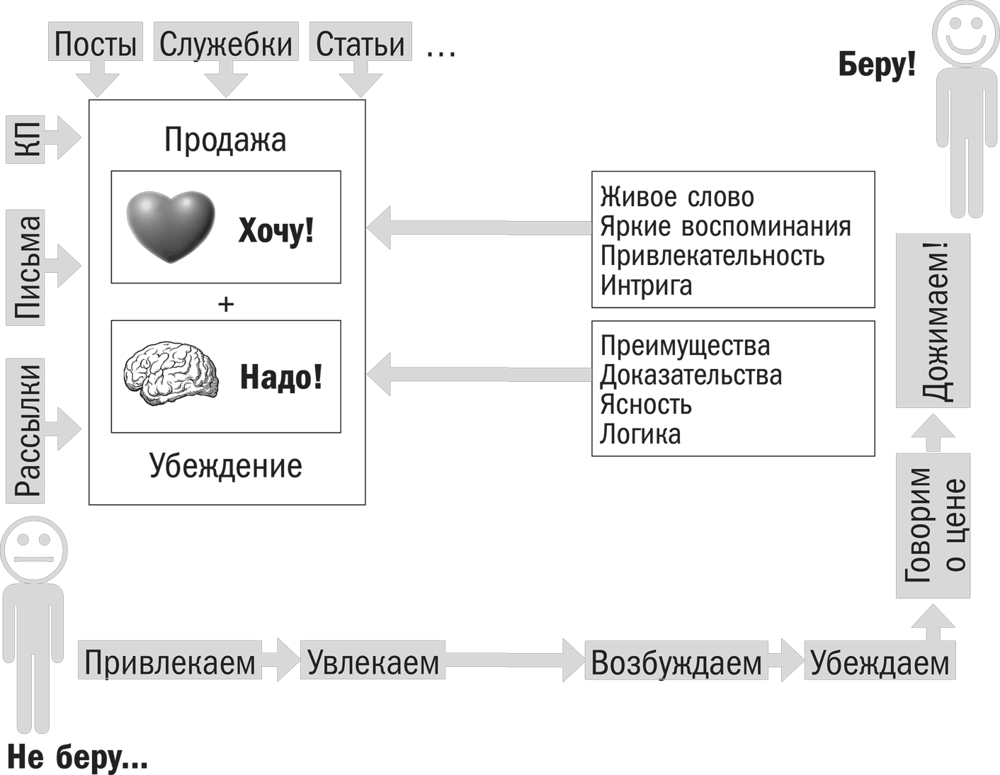 По этой формуле строятся все убеждающие тексты: «продажники», коммерческие предложения, описания продуктов для сайта, служебные записки, статьи… Любое убеждающее послание содержит в себе цель – указание на то, чего же мы, собственно, добиваемся. И аргументы – почему адресат должен поступить «по нашему хотенью».