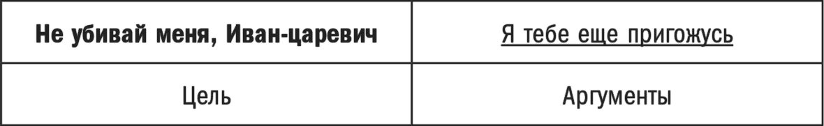 Эту фразу – «Не убивай меня, Иван-царевич, я тебе еще пригожусь!» – можно назвать заветной фразой всех копирайтеров, поскольку в ней заключена универсальная формула убеждения.