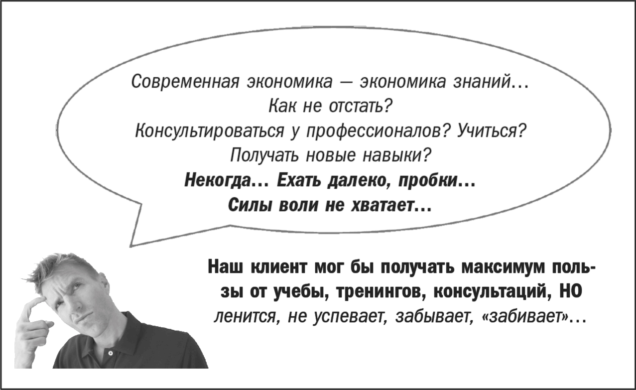 Мы задумались. Что дают покупателю «виртуальные учебники-задачники»? Какая ему польза от «поддержки онлайн-консультаций»? Результат раздумий получился таким: