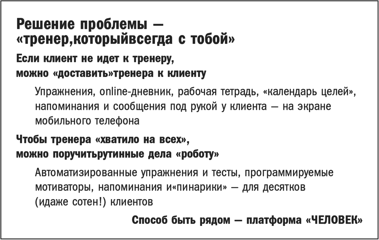 И снова пример – что называется, из личной практики. Не так давно мне довелось участвовать в подготовке слайд-презентации. Мы представляли ИT-платформу для учебных, консалтинговых и тренинговых центров, и раздел о функциях этой платформы клиент никак не хотел утверждать. Выглядел этот раздел так: