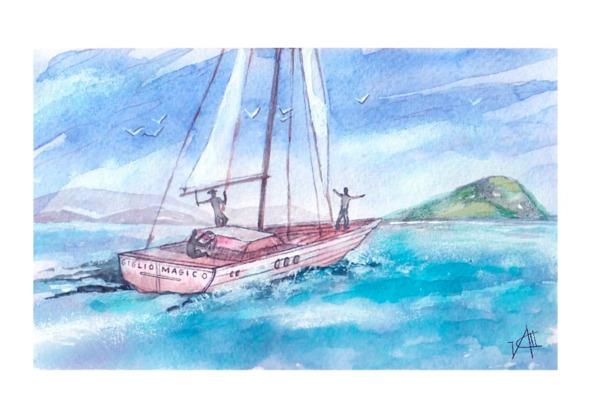 Ormai erano già passate le undici di sera ei tre amici si dirigevano, con passo veloce, verso il porto di Cora. Il principe era convito che sarebbe riuscito a procurarsi, con le buone o con le cattive, una barca veloce ma anche robusta tale da sopportare anche le correnti più pericolose. Con il suo occhio da esperto marinaio si diresse verso un piccolo veliero ad un albero dal nome profetico " Giglio magico ". Ne ispezionò il ponte e, controllato che non vi fosse nessun altro a bordo, invitò i suoi due amici, Marco e Igor, a fare in fretta ea nascondersi all'interno dell'imbarcazione. Quindi sciolse gli ormeggi e issò la vela... L'inizio era stato fortunato tanto che una forte brezza li aveva spinti velocemente al largo.